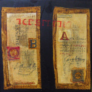 Ogham by Fran Moyer (1955) Acrylic on canvas with frame. Private collection. FM195510